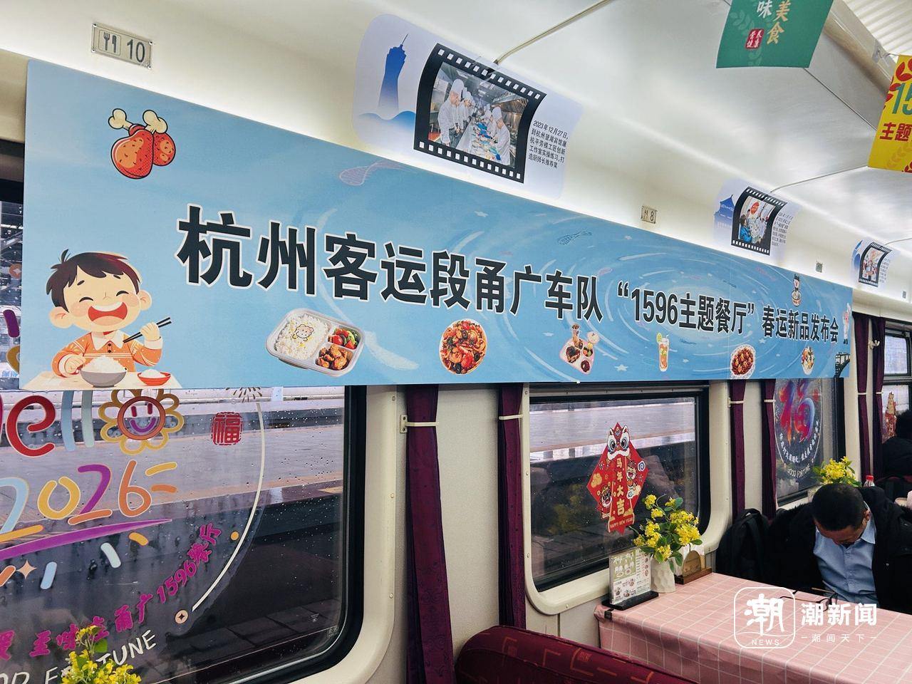 春运将至,绿皮火车上的餐饮已经“卷”起来了。杭州客运段甬广车队在这趟普速列车上举办“1596主题餐厅”春运新品发布会,首次推出儿童套餐。